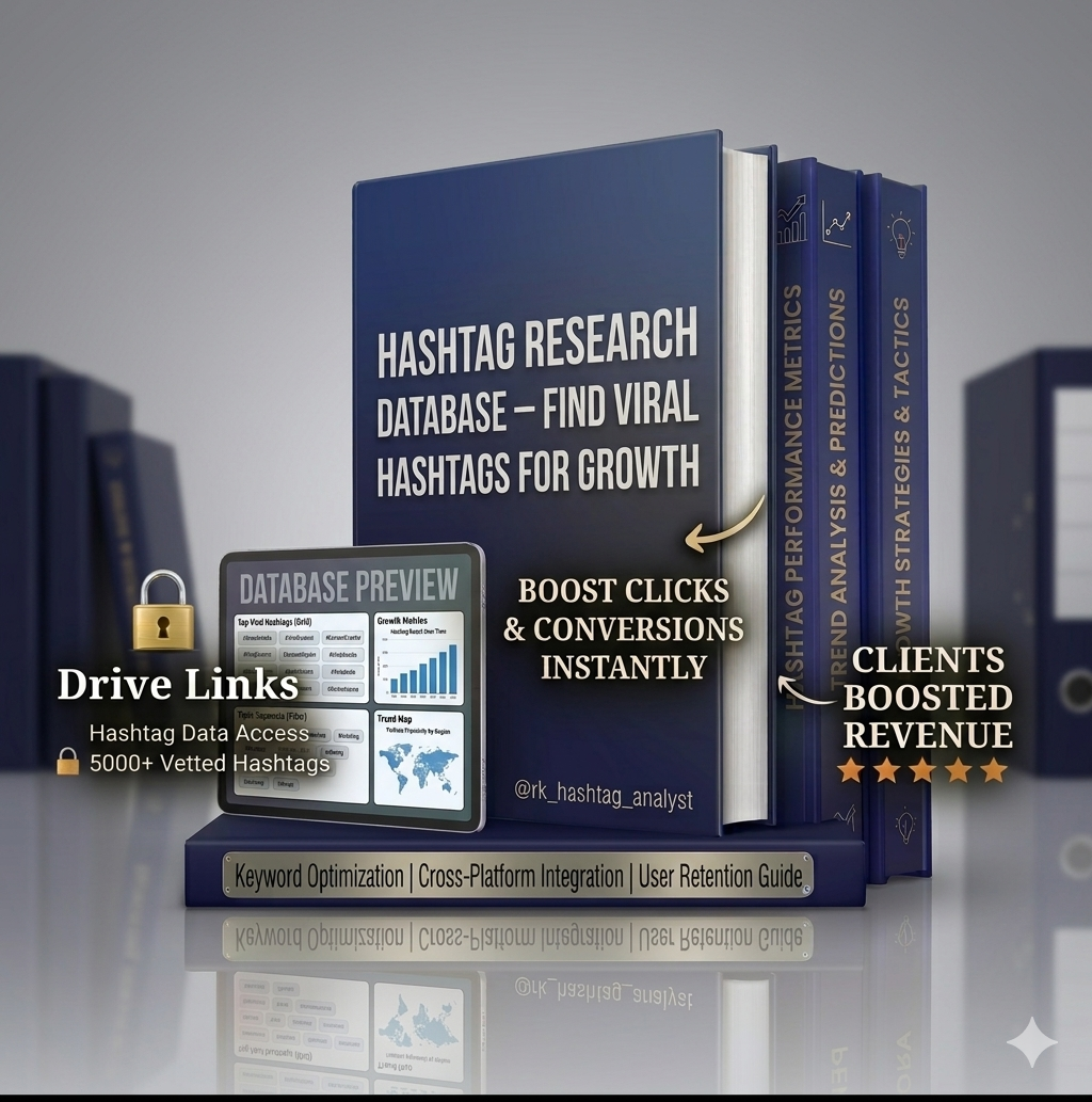 A Hashtag Research Database is a collection of categorized hashtags that are optimized for different niches and purposes.